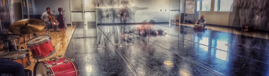 In honoring a tradition we sometimes call forth, I’ll share with you some prompts for our scores. Initially used for warm ups, these originated from Brian Eno’s Oblique Strategies. We have modified them as we wanted throughout our developments. Here are some nuggets: move at a different speed, two sides to a line, go slowly around the outside, cut a vital connection, find something comfortable and use it as an anchor, one dot at a time. Additionally, we’ll be playing with beginnings, identifying singular ideas and supporting them, and deep listening in quartets. I’ll close with this photo of Joelle and I from the first or second Hyperlocal performance in 2014. I think reveals the heart of what is vital in our improvisations- presence, vulnerability, tenderness, space, boundaries and connections. Joelle Worm has performed and contributed to the development of 21 of the 22 Hyperlocal performances (and so much more). She is a vital leader, coach, instigator, trickster, supporter, the first to say “yes” to everyone’s ideas, and also the first to break each and every rule. I am eternally grateful for her artistry, her dancing, her politics, and mostly her friendship.